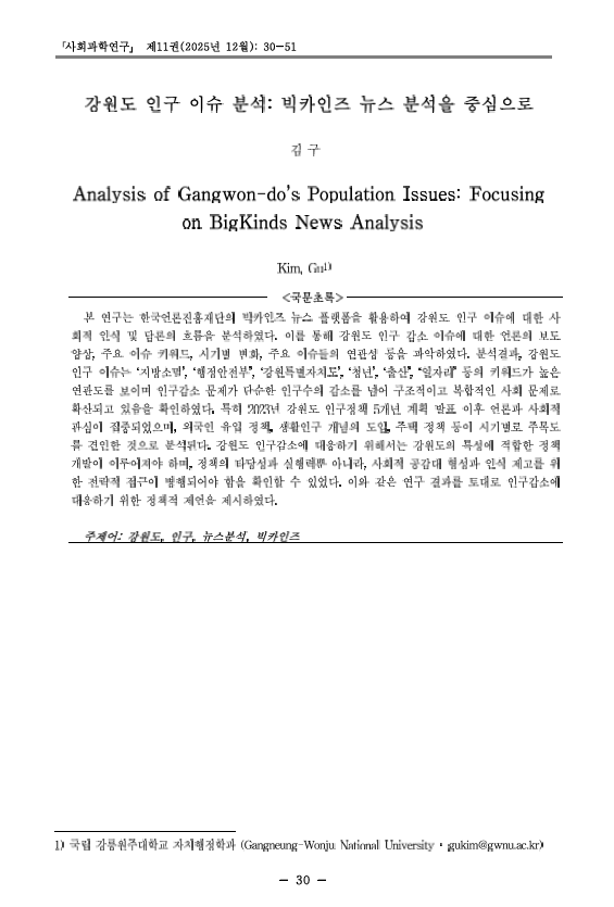 제 11권 3. 강원도 인구 이슈 분석 빅카인즈 뉴스 분석을 중심으로.pdf
